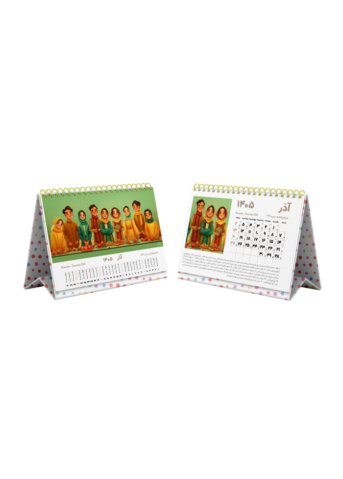 تقویم رومیزی مستر نوت با طراحی اختصاصی برای هر ماه و سبک کاملاً ایرانی، همراه ایدهآل شما در برنامهریزی روزانه و مدیریت زمان است.