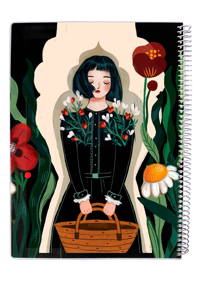 دفتر 100 برگ مجلد کد 112 طرح دختر گل چین
