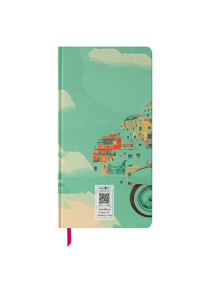 با ابعاد ۱۰×۱۸ سانتیمتر، این دفتر اندازهای خوشدست دارد؛ نه آنقدر کوچک که محدودت کند، نه آنقدر بزرگ که حملش سخت شود. جلد سخت با روکش سلفونی براق و مقاوم از صفحات داخلی محافظت میکند و حس حرفهای و باکیفیتی به دفتر میبخشد.