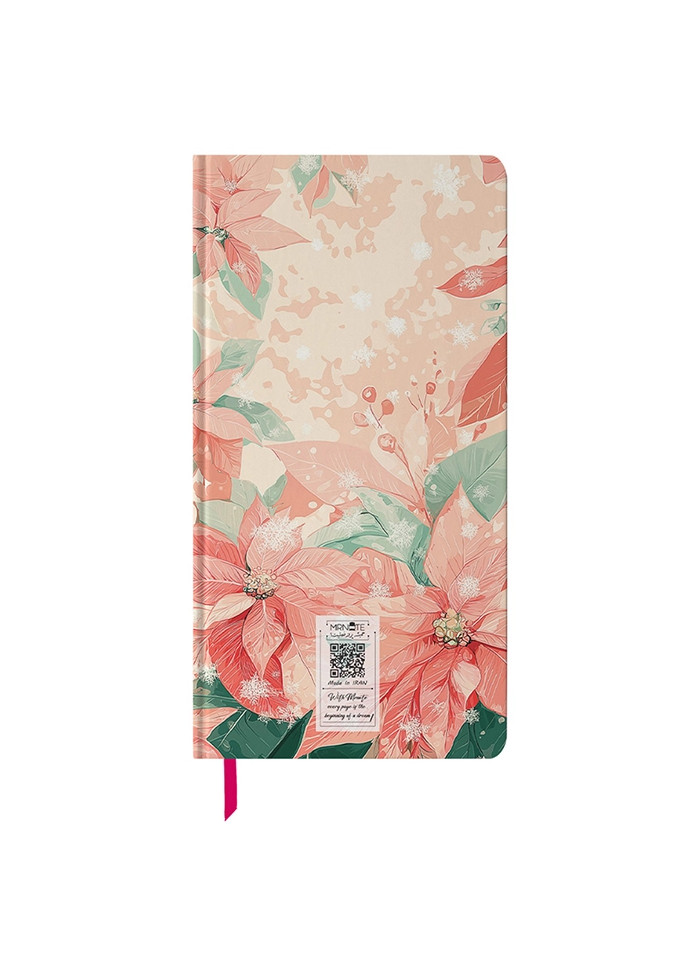با ابعاد ۱۰×۱۸ سانتی‌متر، این دفتر اندازه‌ای خوش‌دست دارد؛ نه آن‌قدر کوچک که محدودت کند، نه آن‌قدر بزرگ که حملش سخت شود. جلد سخت با روکش سلفونی براق و مقاوم از صفحات داخلی محافظت می‌کند و حس حرفه‌ای و باکیفیتی به دفتر می‌بخشد.