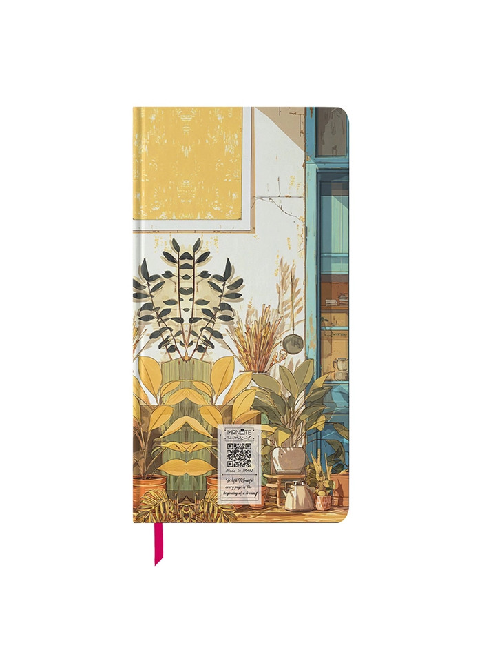 با ابعاد ۱۰×۱۸ سانتی‌متر، این دفتر اندازه‌ای خوش‌دست دارد؛ نه آن‌قدر کوچک که محدودت کند، نه آن‌قدر بزرگ که حملش سخت شود. جلد سخت با روکش سلفونی براق و مقاوم از صفحات داخلی محافظت می‌کند و حس حرفه‌ای و باکیفیتی به دفتر می‌بخشد.